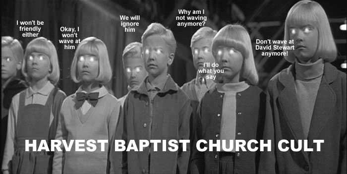 I am torn between my love for THE TRUTH, and my earnest desire to be part of a church family. No believer should have to make such a choice! That is truly pathetic. I am talking about an independent Baptist church! Yes, I am talking about Harvest Baptist Church Cult on Guam. No doubt they would disagree that they are a cult, but from where I sit, I feel exactly like that picture above. That is how they appear to me, when they all act in unison to alienate me. I think what they are doing is horrible. If you don't like my website preaching, then 'Get the Hell out of my church!' (I stole that classic line from Pastor Steven Anderson!)